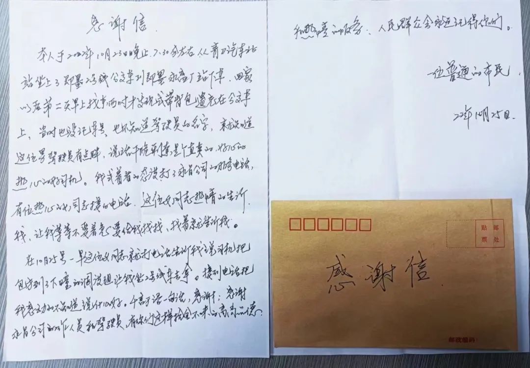 日前,永昌公交公司收到一封來自乘客的感謝信,表揚(yáng)公交公司服務(wù)電話接待人員熱情幫助他查尋丟失物品,并順利拿到了自己丟失的物品。同時(shí)還感謝永昌公交即青2號(hào)線的駕駛員良好服務(wù)態(tài)度、拾金不昧的事跡。